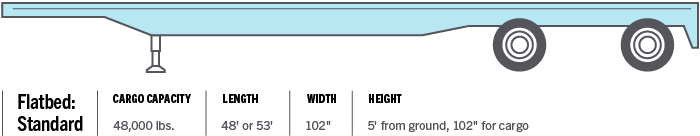 Flatbed loads are hauled in an open-air trailer that allows ample room for oversized or bulky items like machinery or lumber.